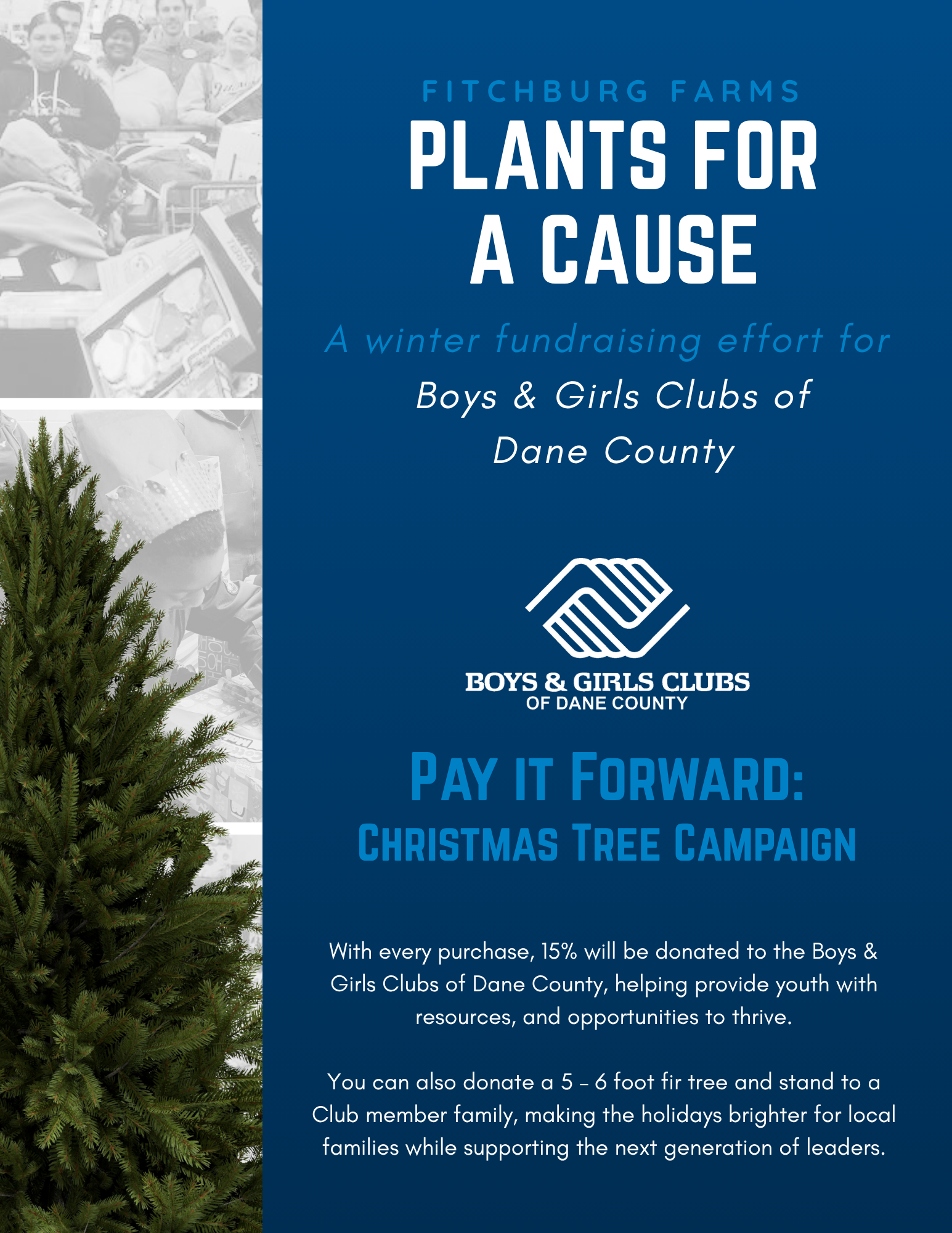 When you purchase a tree, wreath, or winter décor item for yourself, 15% of your purchase also supports Boys & Girls Clubs of Dane County, helping provide local youth with the resources, mentorship, and opportunities they need to thrive.